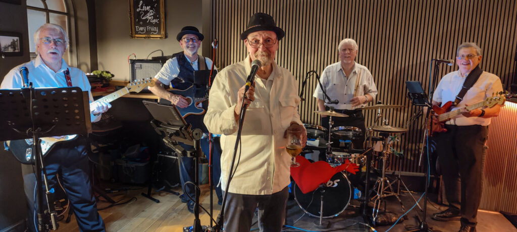 Richard, now retired, and Trevor were our founder members back around 2006, mates who thought it would be a good idea and it has grown from there. Roger joined at Richard’s invitation and has become our musical director. There is a long anecdote about how Chris was invited to join after a casual chat in a canteen. For many years Heartbeat were the resident band at The famous Tipperary in until it closed in 2024. Mick retired in 2022 and was replaced by Ian. John joined us in 2024.